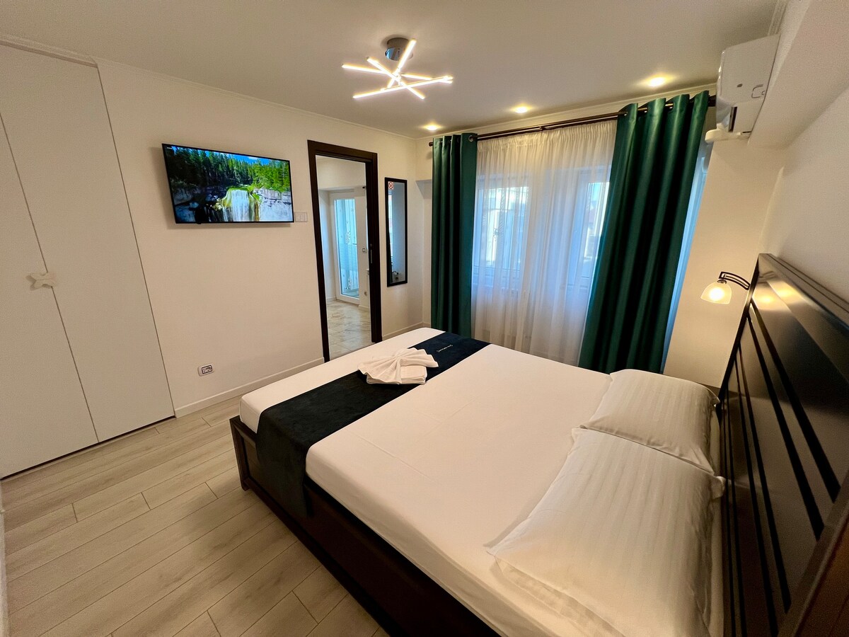 The apartment "Axa Brâncuși" is located ultra-centrally with a unique view of the city center, right on the axis of Brâncuși LOCATED IN THE PEDESTRIAN AREA!! The location consists of: - two spacious bedrooms - Living room - kitchen - two bathrooms - two balconies - hallway It comes equipped with: - 5G Wi-Fi - Smart TV in all rooms - Parking space - refrigerator - washing machine - hair dryer - iron -oven WARNING! We do not accept construction workers!