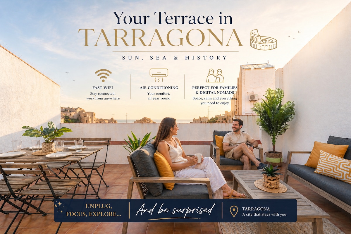 Enjoy Tarragona from this penthouse with a spacious terrace and beautiful sea views 🌊✨. A bright, comfortable, and cozy space, ideal for families, couples, or business trips. Located right in the city center, you can explore the historic old town, the Rambla, and the main attractions on foot. PortAventura is just a short drive away, and Parking Corsini offers a convenient nearby parking option 🚗💨. Book now and experience Tarragona with total comfort and charm!