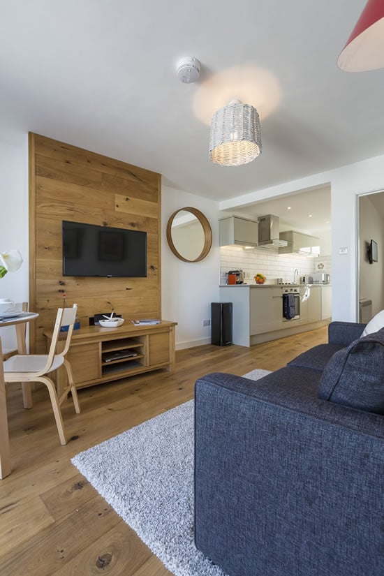 This luxury studio apartment has some of the most breathtaking views of St. Ives harbour, bay and beaches. Located in one of St. Ives oldest buildings in the heart of St. Ives, this modern apartment was designed to keep some features of the original building, whilst making most of the stunning views, whether lounging on the sofa, eating at the breakfast bar, or lay in the comfy bed.