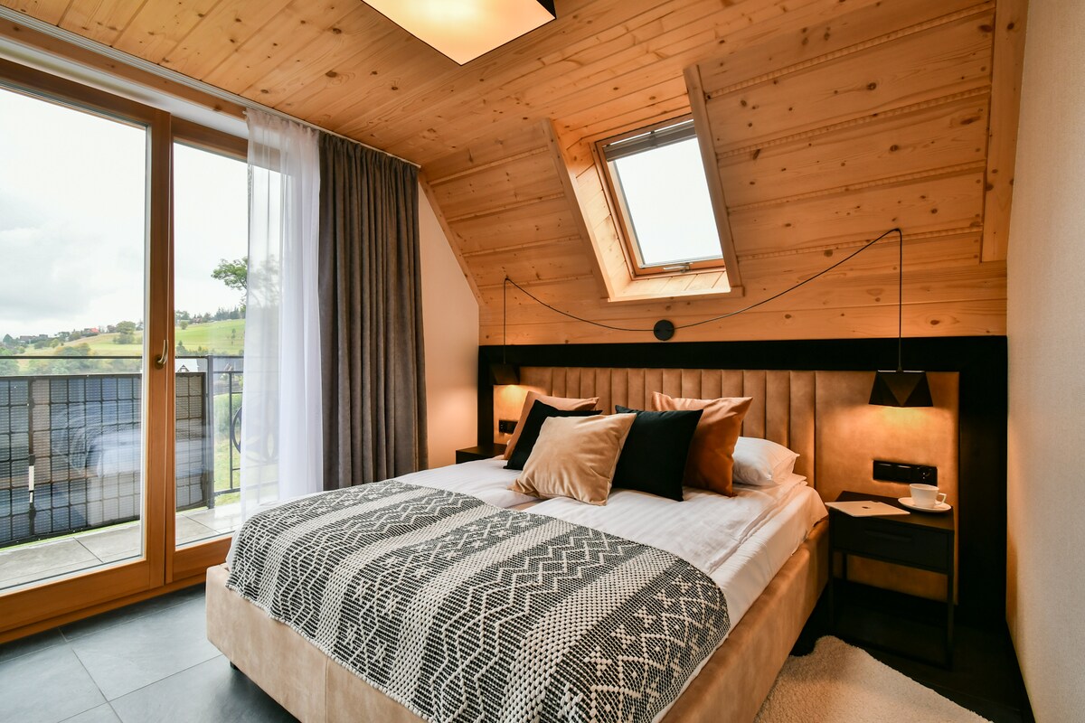 Grand Chalet is a luxurious 250 sqm villa in the heart of Podhale with a panoramic view of the Tatra Mountains. Guests can enjoy: 4 air-conditioned bedrooms, 4 bathrooms, a jacuzzi with a view, a sauna, a game room with billiards and PS5, a fitness area, a fiber optic work room, a children's corner, a fireplace and a year-round barbecue. The villa offers comfortable accommodation for 10 people. The perfect place for a family holiday, meeting friends or a workation – comfort, modernity and a unique atmosphere in one.