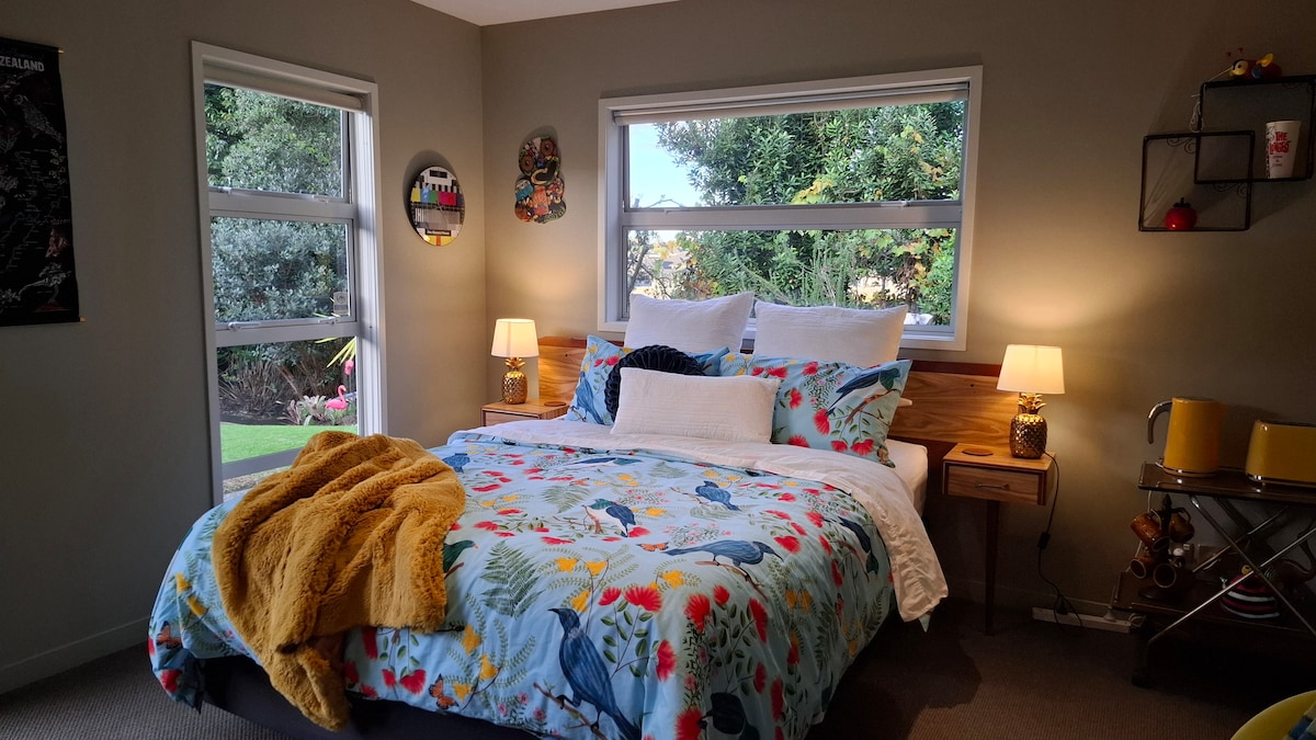 Your own private space beside a family home. super comfy queen bed, own bathroom, heat pump, tv and kitchenette. (Please note this includes fridge, airfryer, microwave, toaster and sink but not hot plate or oven) In Quite neighborhood of Matua, Tauranga. 10mins drive to CBD 15 mins to Mount Maunganui, bustop out front. Loads of walks and urban bike rides on doorstep. Own access, interact with hosts (family of 4) as much or as little as you wish.