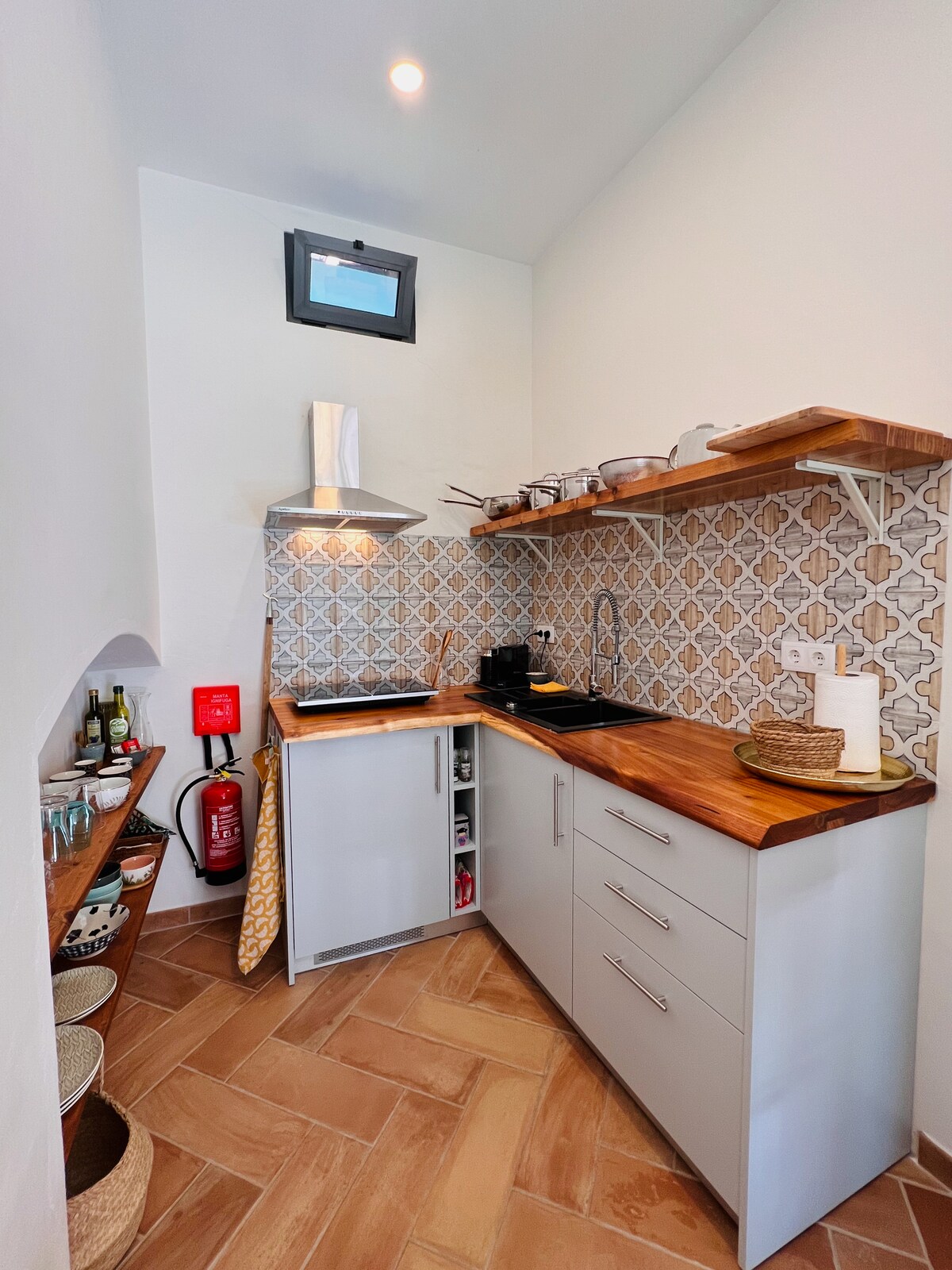 Monte do Cansado is a small country house with a magnificent view over the hills of Tavira. With 2 bedrooms, one bathroom, a huge open-space kitchen and a large sunny terrace it is ideal for beach or hiking holidays in the eastern Algarve. It's central heating in every room makes Monte do Cansado a cozy retreat after long hikes or bike tours on cooler winter days. The big swimming pool with a magnificent view of the valley is shared with the guests of Casa do Pátio and the owners.