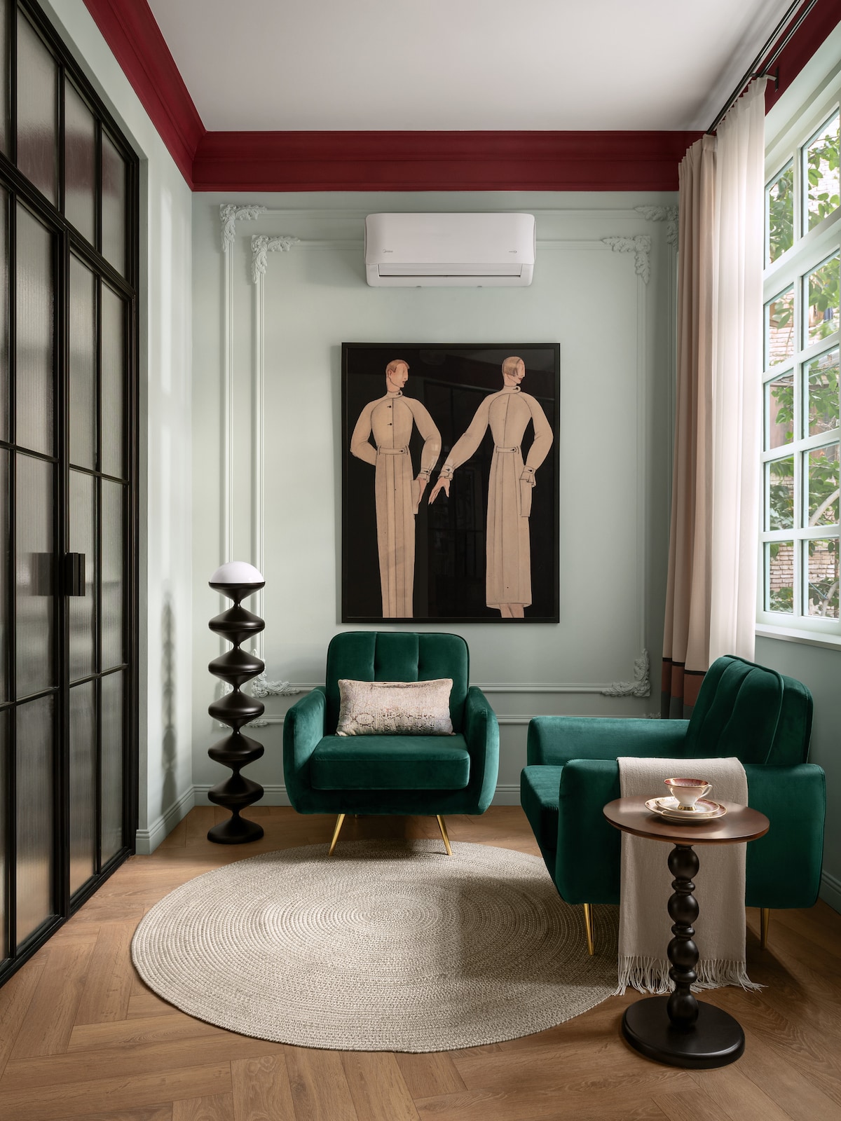This gorgeous, pattern clashing apartment is an explosion of fun color. This is an outstanding modern design apartment, in the historical 120 years old building that is cultural heritage of Georgia. It is located in the heart of old Tbilisi in Sololaki district. Recently renovated 3 bedrooms and 3-bathroom apartment features unique touches like 4m height celling, book collection and fireplace. 2 of the 3 BDRs are master BDRs. What’s more, there is a private balcony with a beautiful garden view.