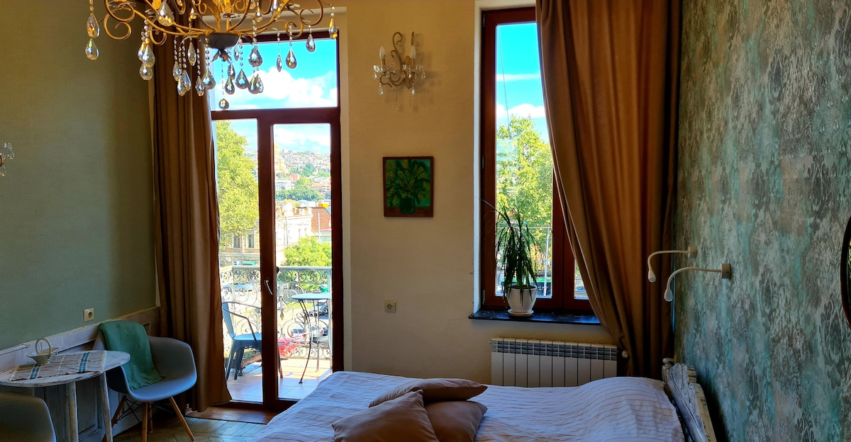 Gala Apartment is located in the heart of the historic Old Town of Tbilisi — perfect for exploring its charming streets and landmarks. Set on the third floor of a historic building, this cozy apartment offers a private balcony and an elegant old-mirror style interior with beautiful antique elements, creating a romantic atmosphere. It’s not just a place to sleep, but a comfortable, fully equipped space for a relaxing and memorable stay.