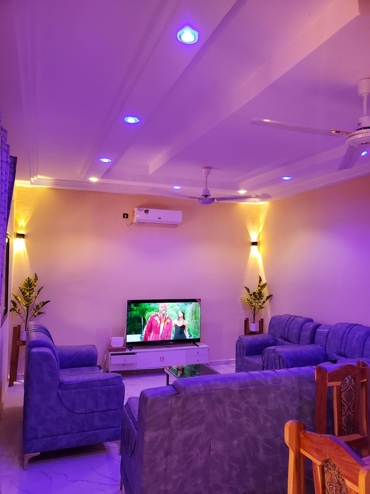 Très belle villa meublée avec garage souterrain. Très chic et confortable situé à Sokode, centre-ville Qt. Kossobio. Pour vacances, cours et longs séjours. Possibilité de louer par chambre. Salon, cuisine, terrasse bien aéres et spacieux. 3 chambre dont une avec WC douche interne + WC douche et WC. Cuisine bien avec four à gaz, congélateur, micro-ondes, ustensiles pour cuisiner. Séjour calme et agréable garanti.