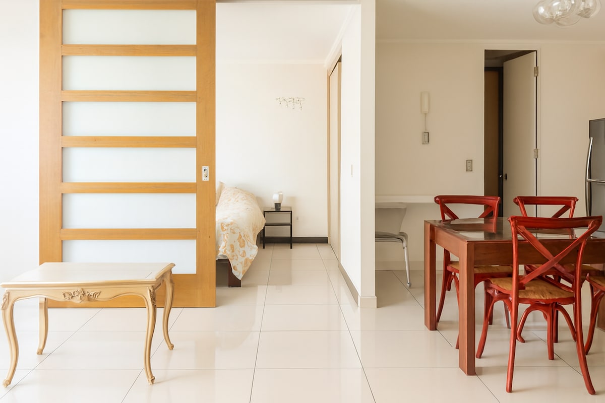 Enjoy a great experience in this central location. Modern and cozy apartment with a privileged location, in the gourmet and bohemian heart of Santiago de Chile "Barrio Lastarria". The neighborhood is a magical mix of history, culture, diversity, and tradition. It is characterized by its great architectural value and its attractive and varied cultural, gastronomic, and recreational offer. (restaurants, cafes, bars, theaters, museums, design galleries, etc).