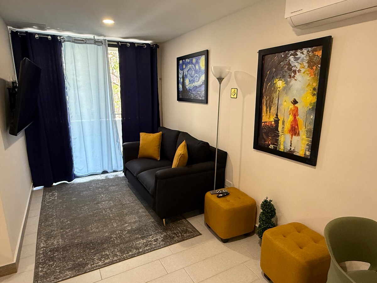 • Furnished terrace + complimentary coffee to unwind • Luxurious and safe apartment • 15 minutes from the U.S. Embassy • 2 bedrooms, each with a private bathroom, blackout curtains, and A/C • Fully equipped kitchen • Free washer and dryer • 3 Smart TVs with Netflix • Ideal location: walk to Multiplaza Mall, banks, and restaurants • Perfect for 4 guests (up to 5: 1 on the sofa) • Pets welcome!