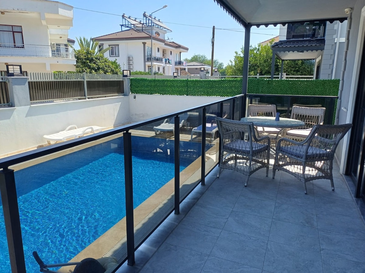 Konaklama Özellikleri • Geniş Kapasite: 2 Yatak Odası + Doğrudan bahçeye açılan geniş salon ile 6 kişi konaklama • Tam Mutfak: İhtiyacınız olan tüm ekipmanlarla donatılmış mutfak alanı. •Yüksek hızlı, sınırsız fiber internet • Ücretsiz çarşaf, nevresim ve havlu değişimi 🏖️ • Size Özel Loca: Havuz başında, her aileye özel tahsis edilmiş, konforlu yataklı lüks localar. • Plaja : Araçla sadece 2 dakika, yürüyüşle 15 dakika • Plaj özel ücretsiz şezlong ve şemsiye • Merkezi marketler 200 mt