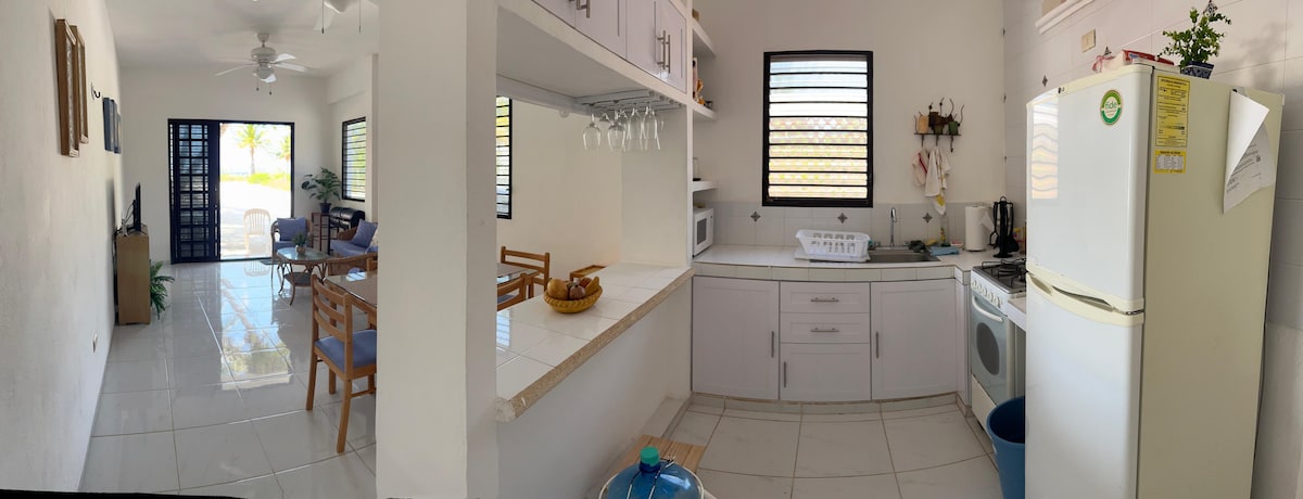 Relax by the sea! 🌊 Enjoy our beachfront house, with 2 bedrooms (2 double beds, 2 single beds) and hammocks available (request them in advance). The full kitchen has a microwave and a coffee maker. It has Wi-Fi and extras such as lounge chairs, beach toys and board games. Explore the area with boat rides, flamingo tours, fishing, or kayak rentals. Nearby restaurants with seafood, pasta and more. Relax and enjoy!