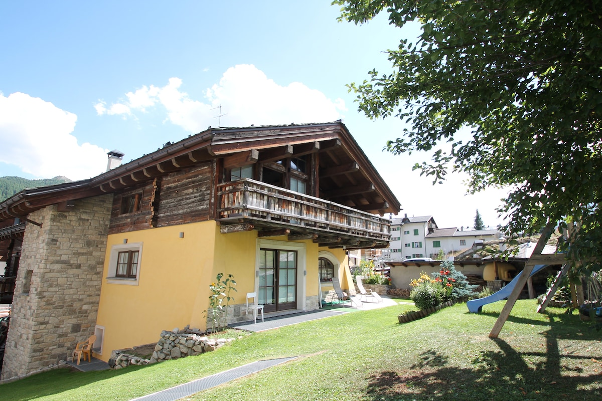 If you love mountains, halfway between Bormio and Livigno, you can find the quiet, the peace and the comfort you are looking for hosted in a refined and recently renovated chalet, surrounded by the nature and with a beautiful view of the magnificent "Cima Piazzi". Even it's located outside the town, the chalet, at the same time, it's a few steps away from basic necessities. It represents an ideal point of departure for excursions on foot or by bicycle.