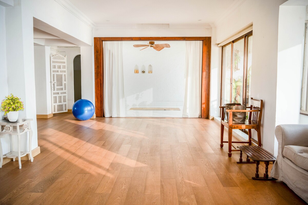 A spacious apartment with covered parking in a CENTRAL location- with a retreat like vibe away from the hustle and bustle of city life. Bright and airy rooms located on Chapel road in Bandra (West), walking distance from Lilavati Hospital, Bandstand Promenade, close to Bandra Worli sea-link and International Airport. Artsy neighbourhood with colourful street graffiti. Paid parking available. Hi speed internet. Fully equipped kitchen for cooking.