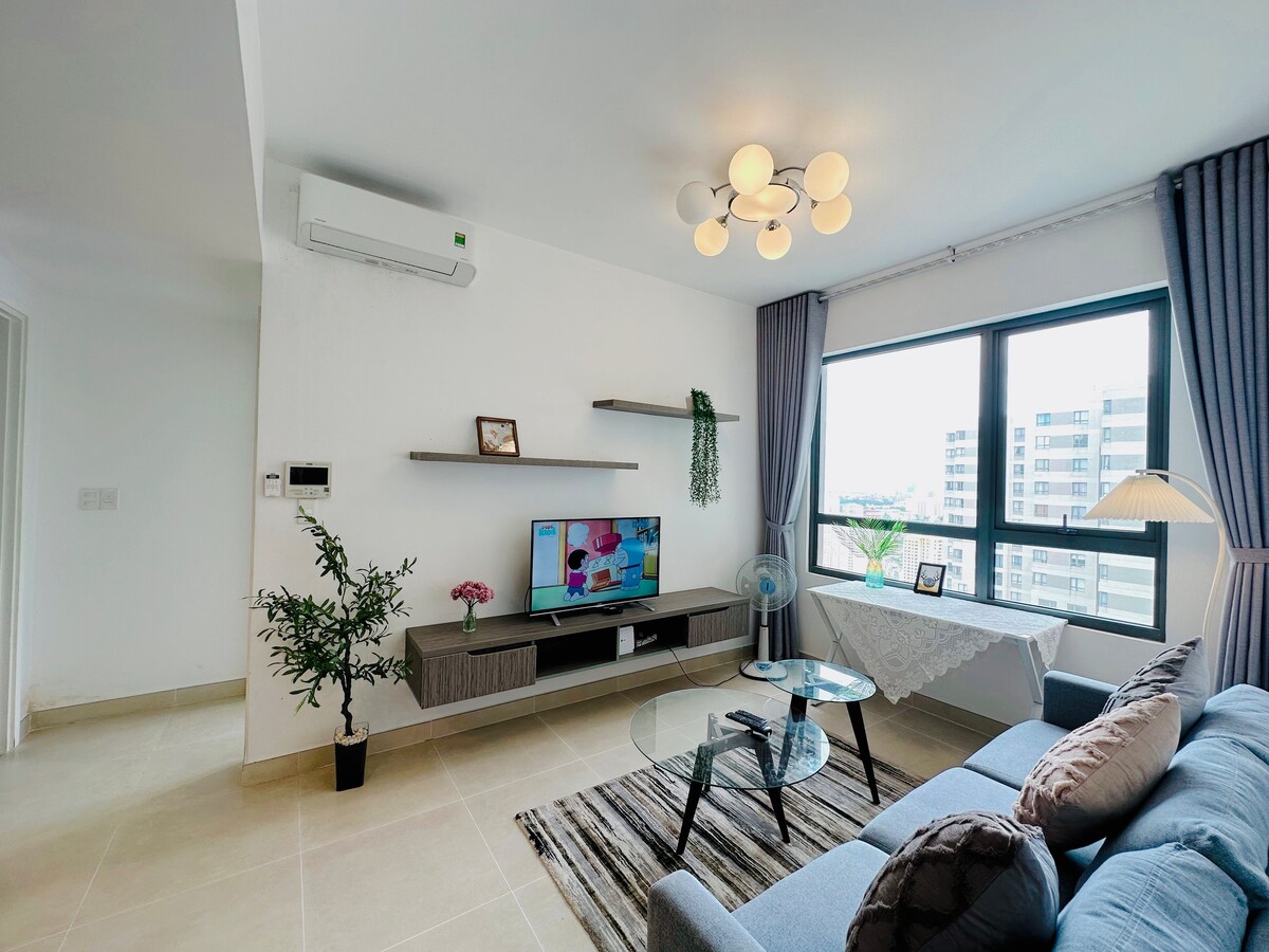 Welcome to Your Urban Oasis! Relax in our 1-bedroom apt for 2 with a wide-view balcony in Japan Town, just 5 minutes from HCM center. Restaurants, bars, cafes, massage spots, and convenience stores are all within a 1-200m walk. On 3rd floor, your Japandi paradise has full amenities. No elevator, but the wide and gentle stairs are a free workout! 💪 Enjoy a 100-inch projector for movie nights, a cozy 1.8m sofa, a fully-equipped kitchen, and a refreshing bathroom.