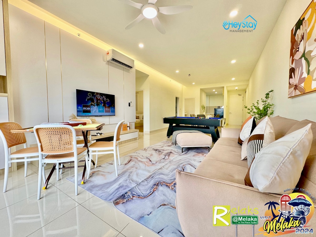 MaxJovial Holiday Management Well Managed Seaview Family Suites (4 pax) • Two Room with Two King Bed • Bay Window with Sea and Sunset View • Lovely Harmony Environment • 876 Square Feet Space • FREE WIFI • Smart TV • Room with Living room, Dining Area, Kitchen and bathroom with bathtub and more. Located in the heart of downtown , near to the tourist attractions and famous restaurants in Melaka . 马六甲两房式海景房(4人) • 舒适幽静设计 • 876方尺空间 • 客厅,饭厅以及浴室备有浴缸 坐落在甲市中心,地理位置优越 -旅游景点及著名美食近在咫尺