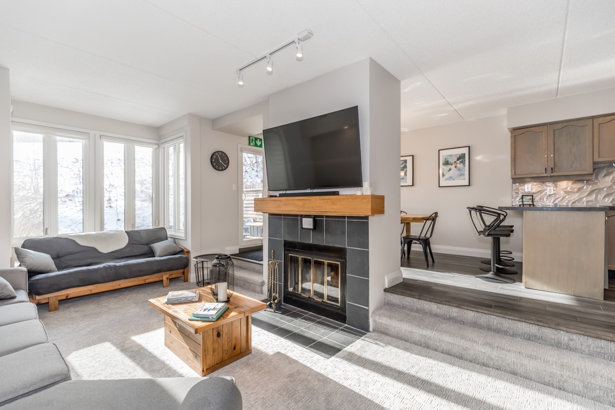 Renovated studio unit at the North Creek Resort featuring: * King Bed * SMART TV, High-Speed Rogers Ignite WIFI and TV * Pull Out Sofa * Stone Fireplace * Modern, Stylish Decor *please note there is not a traditional oven- there is a microwave/convection oven combo along with a stove top *Shuttle Service *Year Round Hot Tub *Pool (closed for the winter season- to reopen Spring '26) *Tennis Courts *Ski or Hike In/Out to the North Hill (hiking trails, intermediate-advanced daytime skiing)