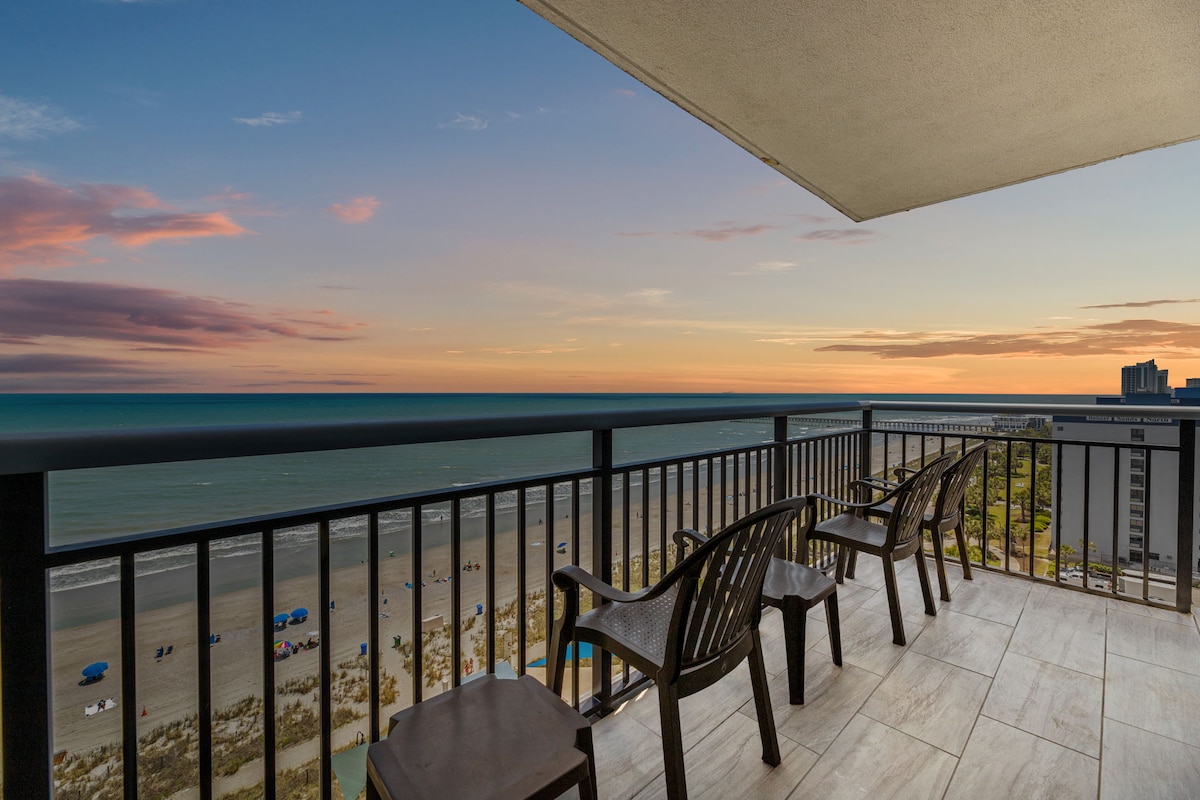 Nothing sweeter than waking up to ocean sunrise or watching the moon shimmer on the beach at night from a super comfy King size bed. Relax or enjoy coffee on this private Oceanfront balcony with a ravishing view in the morning or after a fun day at the beach. This luxury condo is perfect for people watching or walking out onto the soft powdery sand with a loved one. No need to get back into a car when you can walk to experience all the fun, energy and great food at downtown Myrtle Beach.