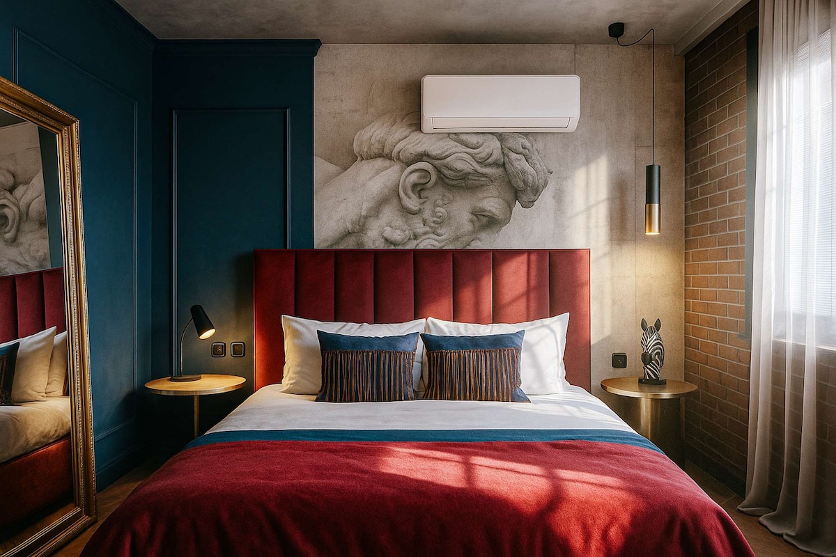 Experience the charm of our urban loft in the heart of the city! Enjoy the peace in our elegant bedroom, with wide windows that fill the room with sunlight, and settle into a luxurious marble bathroom. Located in a lovely neighborhood, this inviting space offers a fully equipped kitchen, a relaxing living area, and a small balcony. Perfect for the modern traveler who values style and comfort. Book your stay - delight in the simple luxuries and make this loft your personal hideaway.