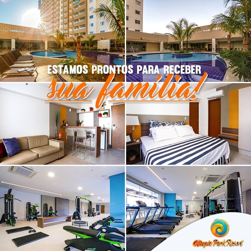Flat next to Thermas dos Laranjais in Olympia with kitchen Open concept room and American kitchen, bedroom with double bed, single bed, auxiliary bed and sofa bed in the living room. excellent for the entire family, hotel service, heated pools, air-conditioned pools and a cold pool with a swim-up bar. saunas, water park, game room, playroom, mini golf, multi-sport court, circus activities, beach tennis court, restaurants, bars, monitors, transfer to thermal baths