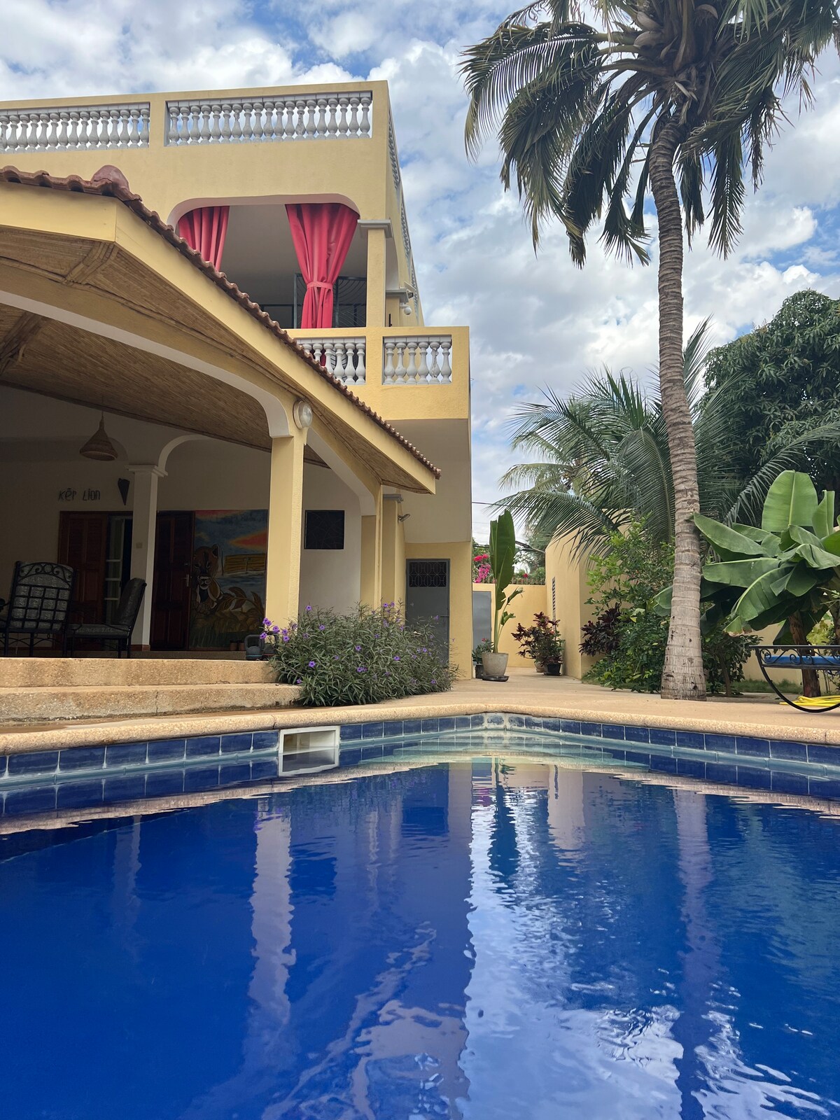 Nestled in the tropical garden, the villa is perfect for a relaxing stay, with family or friends. Orchard & flowered terraces enhance the pool (11 m/5). Ideally located between Saly and La Somone, Ngaparou, an authentic fishing village, offers a serene living environment. Our team will take care of you (caretaker and hostess). Nearby shops and services + many leisure and activities: walks (land/sea), beaches, water sports, golf, animal parks, super restaurants...