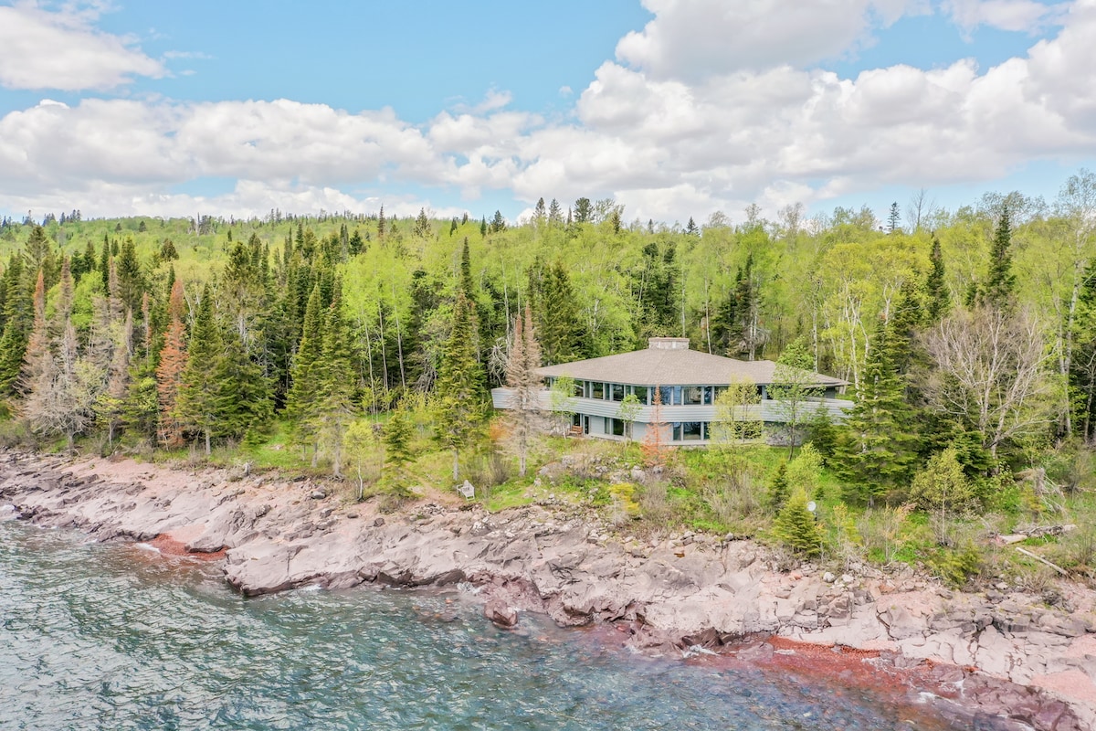 Forget your worries in this spacious and serene space. A true mid-century modern home on the north shore of Lake Superior between Lutsen and Grand Marais. Experience stunning east to west views of lake and sky from the house and large deck. Located close to hiking trails, both alpine and nordic ski trails, Superior National Golf course, shopping and dining in Grand Marais. Work from home with a fast wifi connection at one of two dedicated office spaces.