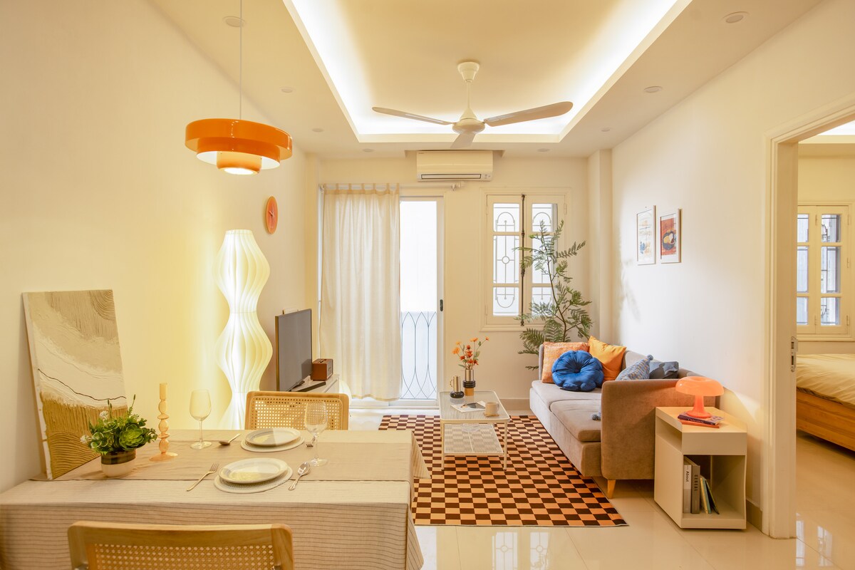 ✨ Dangi Home – Luxury Duplex Apartment in Tay Ho A colorful mid-century duplex on the 20th floor with full West Lake views. Fully equipped kitchen, cozy living room with Netflix, bathtub, and all essential amenities for a comfortable and effortless stay. Prime Location • 5-minute walk to Lotte Mall West Lake – shopping, dining & entertainment • 15 minutes to the Old Quarter • 20-minute drive to Noi Bai International Airport • Surrounded by cafes, restaurants, Winmart, and Highlands Coffee