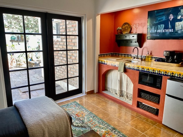 Guest suite with one bedroom, a living room, bathroom, and an independent entrance. Una suite amplia con una recámara, una sala y un baño privado , cuenta con microwave, un refrigerador pequeño, cafetera , tiene entrada independiente , lo cual les dará mucha privacidad.