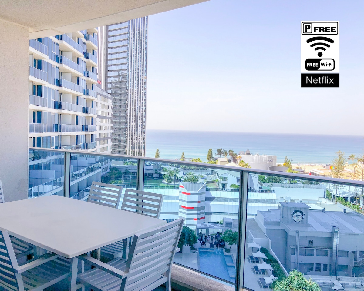 Top Location! Top Floor Heart of Surfers free park