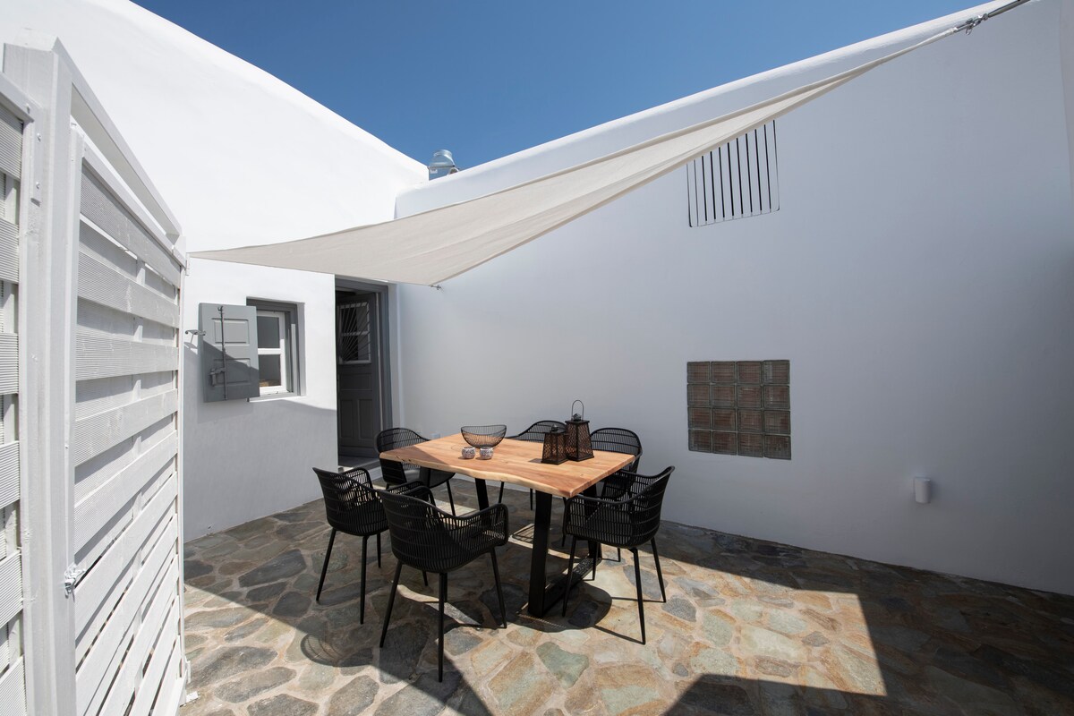 Beautiful traditional Cycladic house with all the amenities, suitable for families. A combination of traditional architecture and aesthetics with modern comforts. View of the Laggadi of Falatados, a large traditional village with restaurants and mini markets, just 15 minutes from Chora and beaches. Close to the village public parking lot and the main alley. Easy access.