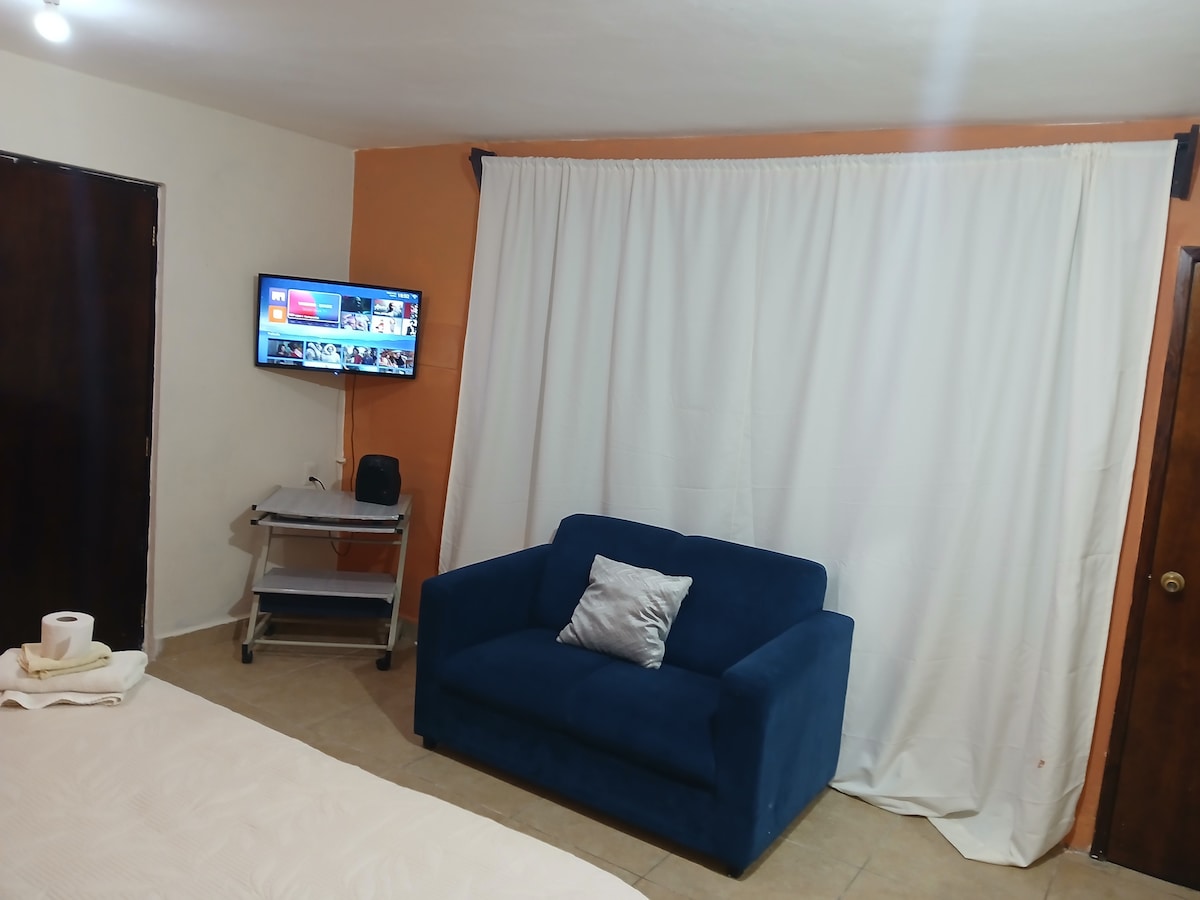 Enjoy the simplicity of this quiet and central accommodation. After work or visiting the riverside city, you can recharge your batteries by resting comfortably in the room with all the services you need, since when you go out on the street you will have a store on the left and a bakery on the right, in front of a covered basketball court to exercise behind this the OXXO and 5' walking a shopping center and market, if your stay is per week you will share the kitchen and living room.