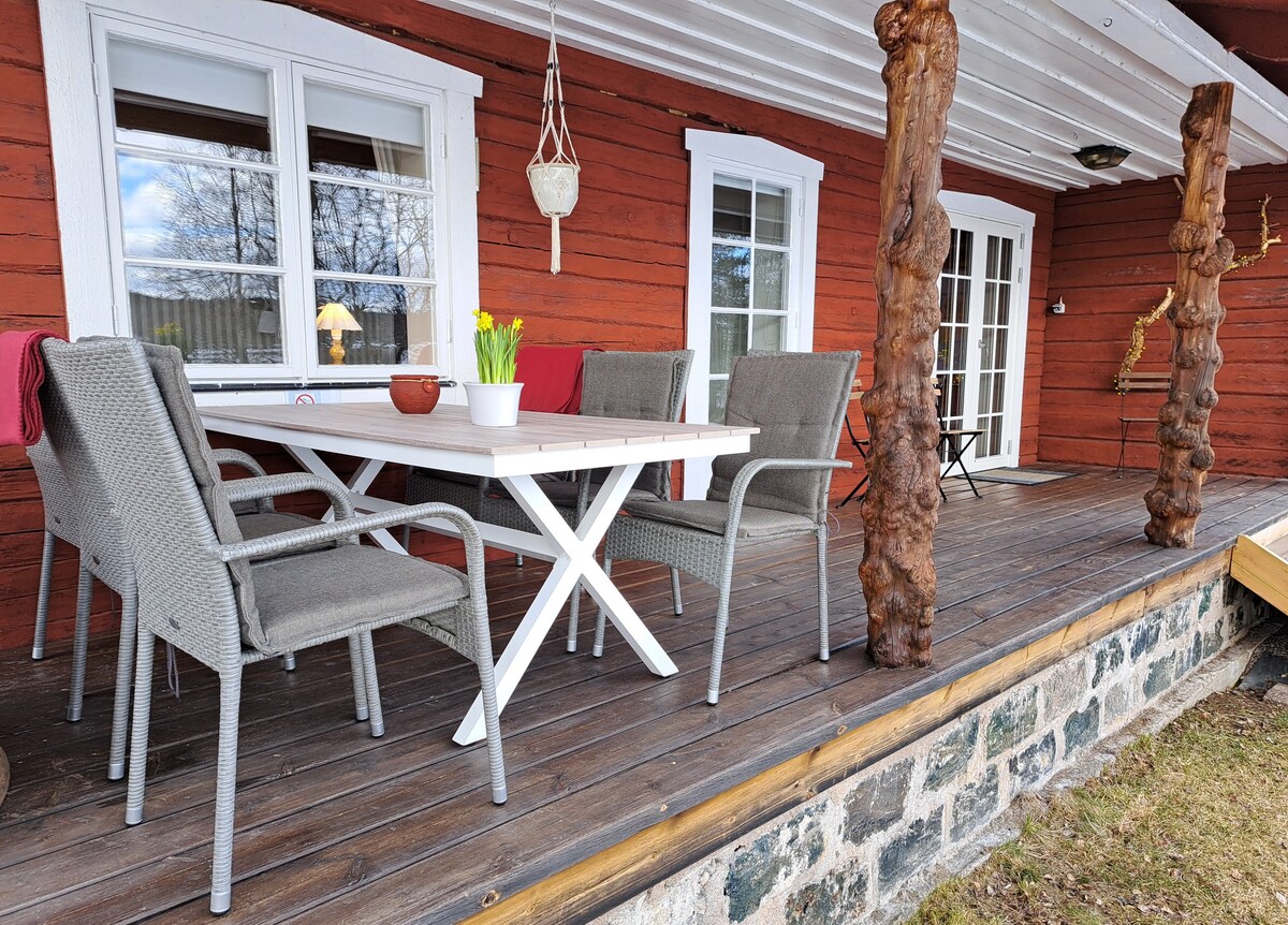 Relax in this peaceful accommodation out in the countryside! Fully-equipped kitchen, newly-renovated shower/toilet/washing machine. Nice garden, car parking and charger for electric car. In the cottage, there are two double beds, a sofa bed for two, a single bed and a crib. Within walking distance there is a swimming and fishing spot, canoe trail, hiking trails, outdoor gym, electric light trail, ski trail, farm shop, grocery store and bus stop. By car, you can reach Carl-Larssongården, Bjursås ski center, Nysjöns fäbod and Falu mine in half an hour.