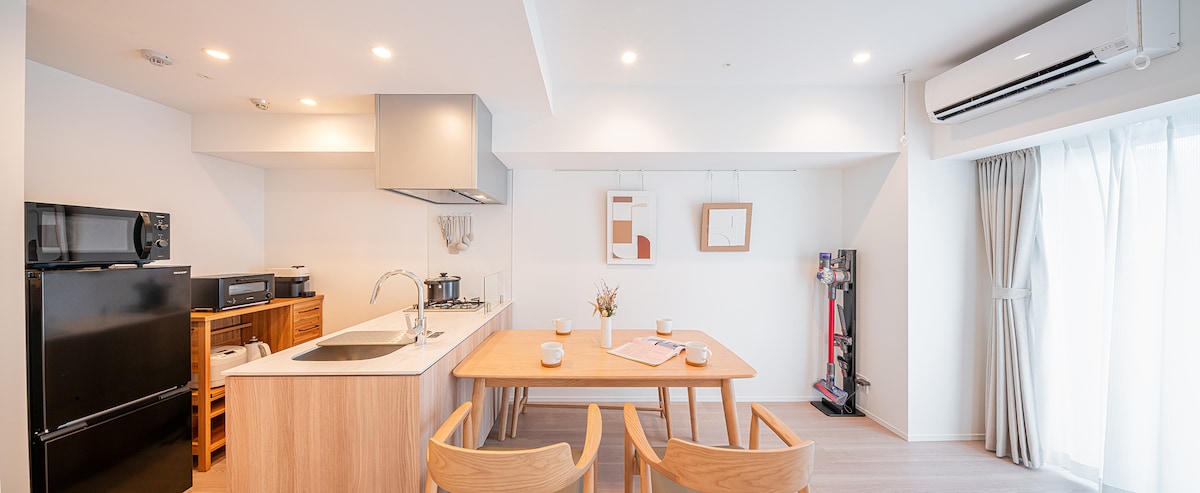 Skytree | 1 min walk from Oshiage Station | 65㎡ 3-bed family room | Private bathroom | Kitchen | Fully equipped with household appliances | Convenient for travel, living, transportation, and shopping