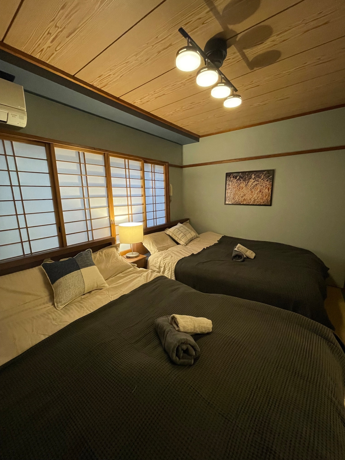 Step into this new ground floor apartment in Sumida, Tokyo, near the Skytree, where the light wood tones and soft lighting intertwine to create a relaxing and warm living experience. Listing Layout • Large living room Comfortable sofas and TVs make the leisure time of the trip relaxing and enjoyable. • Open kitchen Equipped with basic kitchenware, cutlery, electric kettle, refrigerator, microwave oven and other appliances, it is suitable for making a warm home-cooked meal occasionally. • Two private bedrooms Each is equipped with a 1.6m × 2.0m large double bed, soft and comfortable, with a fresh and modern layout, making people feel relaxed as soon as they enter the door. • Bathroom equipment • Wet and dry separation design to keep the space tidy and fresh. • Bathtub and separate shower to relax during your trip. • Double vanity design for more efficient morning and evening grooming. • Equipped with basic toiletries such as disposable toothbrushes, hairdryers, etc. • The washing machine has a drying function, so you can easily handle laundry needs during business trips or long stays. Comfortable and convenient location • Convenience stores, supermarkets, cafes, and authentic Japanese restaurants within walking distance. • About 3 mins walk to Tokyo Skytree and Skytree City Shopping Mall • Easy access to popular areas such as Asakusa, Ueno, Akihabara, etc. House Features • Newly renovated, cozy and bright • Double bedroom design, suitable for families, couples or friends • Ground floor unit, no need to climb stairs, easy access • Free luggage storage room