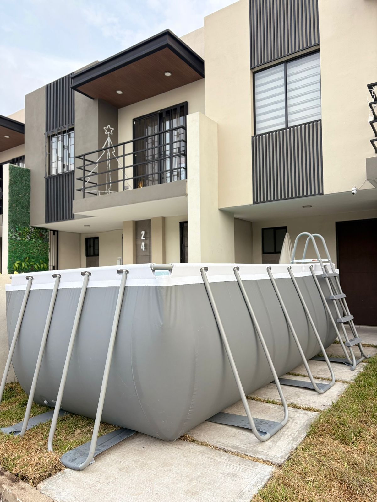 alberca armable de 4m largo 2m ancho 1.22 aprox profundidad. Jacuzzi para 4 personas con calefacción, doble filtro de seguridad, parque y zona para mascotas. Cocina integral con gas, utensilios de cocina, sartenes, ollas, tazas y platos. Pantalla gigante de 85 pulgadas para que disfrutes de tus películas favoritas. Contamos también con una consola PS5. 1 cama king size, dos camas matrimoniales y comedor de 6 sillas