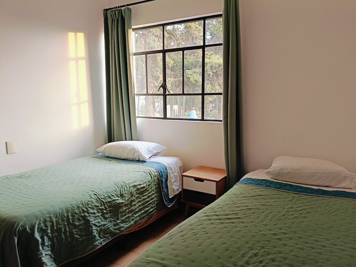 Disfruta de la calidez de este alojamiento tranquilo y céntrico, con acceso rápido a las avenidas principales, afuera en la calle encontrarás una Plaza comercial con Banorte, Starbucks farmacia Guadalajara, Subway, restaurantes, hair Studio, business center. El alojamiento cuenta con estacionamiento propio seguro, si deseas conocer el centro el centro de Metepec, puedes hacerlo caminando la zona es muy tranquila y estamos a 10 min caminando.