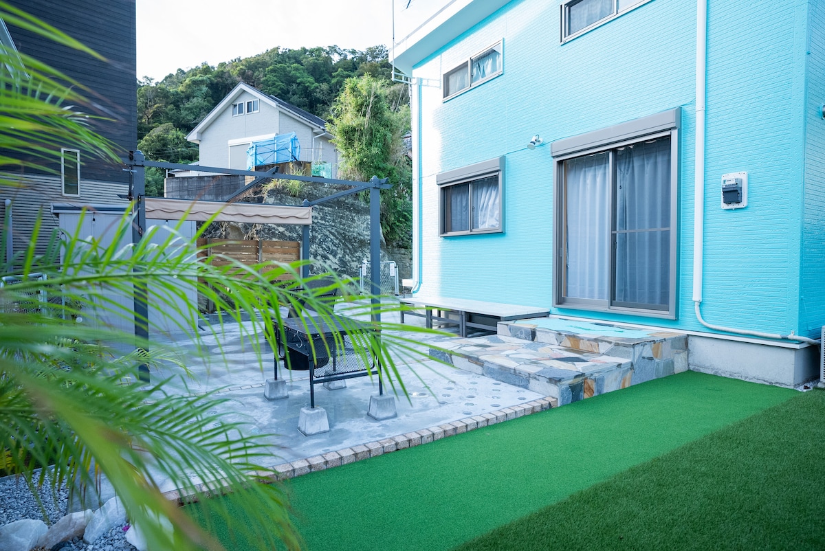 Accommodates 10 people/2 minutes to the sea/snorkeling/BBQ/ocean view/spacious living room/outdoor shower