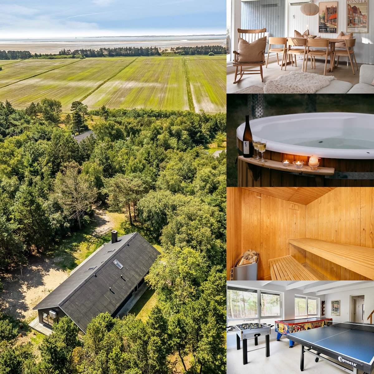 Drøm dig væk til Rømø – en ø, hvor himmel og hav smelter sammen, og naturen viser sig fra sin mest betagende side. Midt i det vilde landskab ved Sønderstrand og det magiske Vadehav, optaget på UNESCO’s verdensarvsliste, ligger dette moderne og nyrenoveret sommerhus på 150 m² med plads til 12 gæster (8 voksne og 4 børn). Her forenes luksus, wellness, aktiviteter og natur med spabad, sauna og vildmarksbad under stjernerne – perfekt til familier, venner og par, der søger ro, frihed og fordybelse.