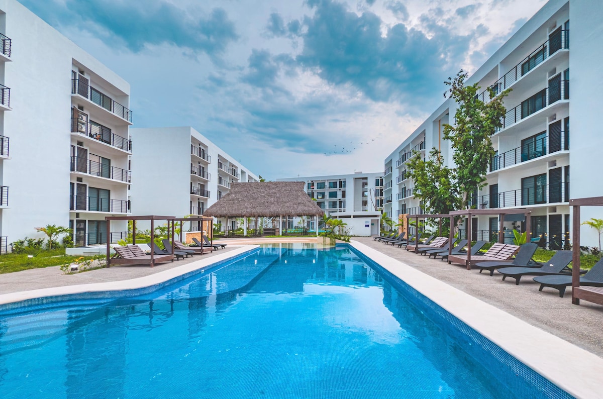 Unwind in this stylish 1-bedroom condo at Mío Riviera Nayarit, just a 10-minute walk from Playa Fibba in Nuevo Nayarit. Perfect for couples, this comfortable retreat offers access to a shared pool and gym in a peaceful yet convenient location. Enjoy nearby restaurants, cafés, and local attractions—all within easy reach for a relaxing stay.