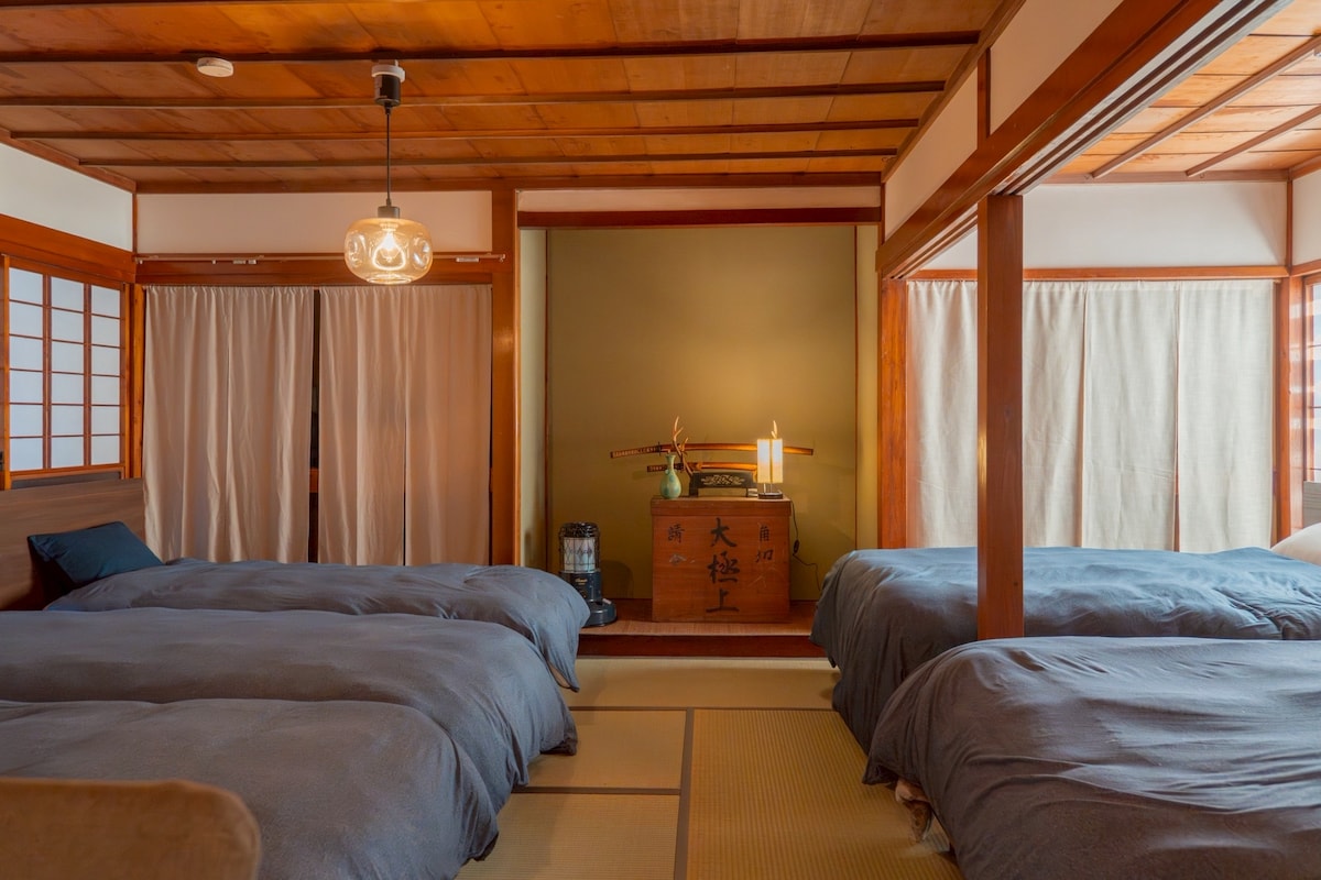 和モダン忍者屋敷×バレルサウナでととのう宿泊体験! 群馬県みなかみ町、田園と山々を臨む場所に、新感覚の宿泊施設が誕生しました。 築50年以上の戸建てを新築同様にリノベーション。安全性と快適性を最新にし、無垢床と陽当たりが心地よい2LDKの空間は、ただ泊まるだけの場所ではありません。 忍者屋敷がコンセプトのワクワクとドキドキの空間で、 「隠し通路?」「このドア、どこを開けるの?」と、 家族や友人と一緒に探検する楽しさが待っています。 さらに、檜のバレルサウナと“整いスペース”を完備。 自然の風景を眺めながら心と身体をリセットする、極上のリラクゼーション体験もご堪能ください。 ※追加料金なし システムキッチン、ドラム式洗濯乾燥機など 設備も充実しております。 ⛄️パウダースノーを楽しめる好立地 複数スノーエリアにアクセスがよく、冬の長期滞在にも最適です。 【車10-15分程度】 ・ ノルンみなかみスキー場 ・奥利根スノーパーク ・ほうだいぎスキー場 【車30分程度】 ・天神平スキー場 ・川場スキー場 【車45分程度】 ・苗場スキー場 皆様のお越しをお待ちしております✨
