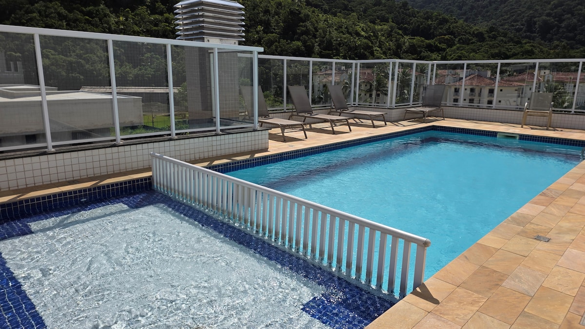 Studio-style apartment with 40m², modern and cozy, featuring a full kitchen with the main appliances, Wi-Fi, air-conditioning, smartv, large balcony overlooking the pool, all designed for your comfort and tranquility. Residencial Fiji is a new and modern condominium, located in the most charming area of Praia Grande, a few steps from the beach. It has a complete leisure area with saunas, fitness center, game room, playground, self-service laundry and ice maker.