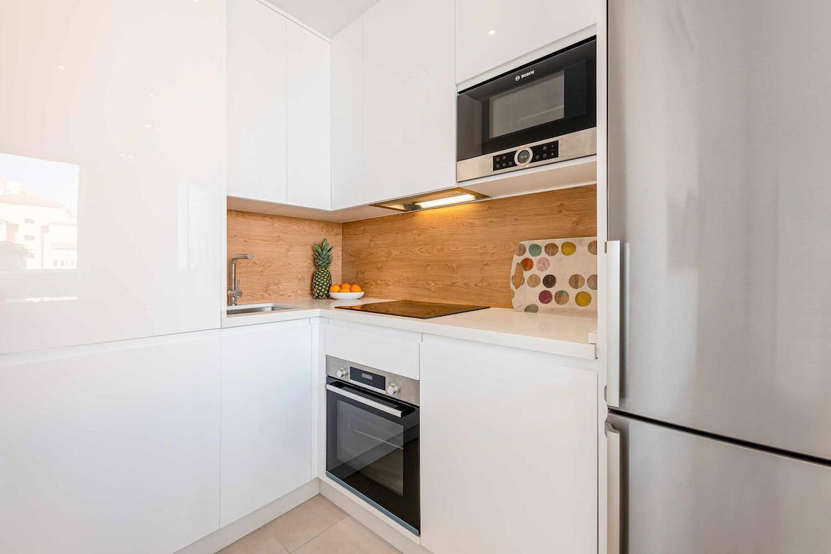 Lovely apartment with balcony, Equipped with everything you need for an excellent stay. One bedroom, 1 double bed of 1.50 meters, 1 sofa bed. Air conditioning, WIFI (fast, fiber optic), 55" Smart TV. Kitchen, washing machine, stove, Dolce Gusto coffee maker, refrigerator, toaster, kettle, iron Bathroom: shampoo, gel, hair dryer, and hair straightener Supermarket: 100 meters Train: 3 minutes Beach: 3 minutes Airport: 13 minutes by train or car Train Station, Calle San Miguel, La Nogalera 3 minutes on foot