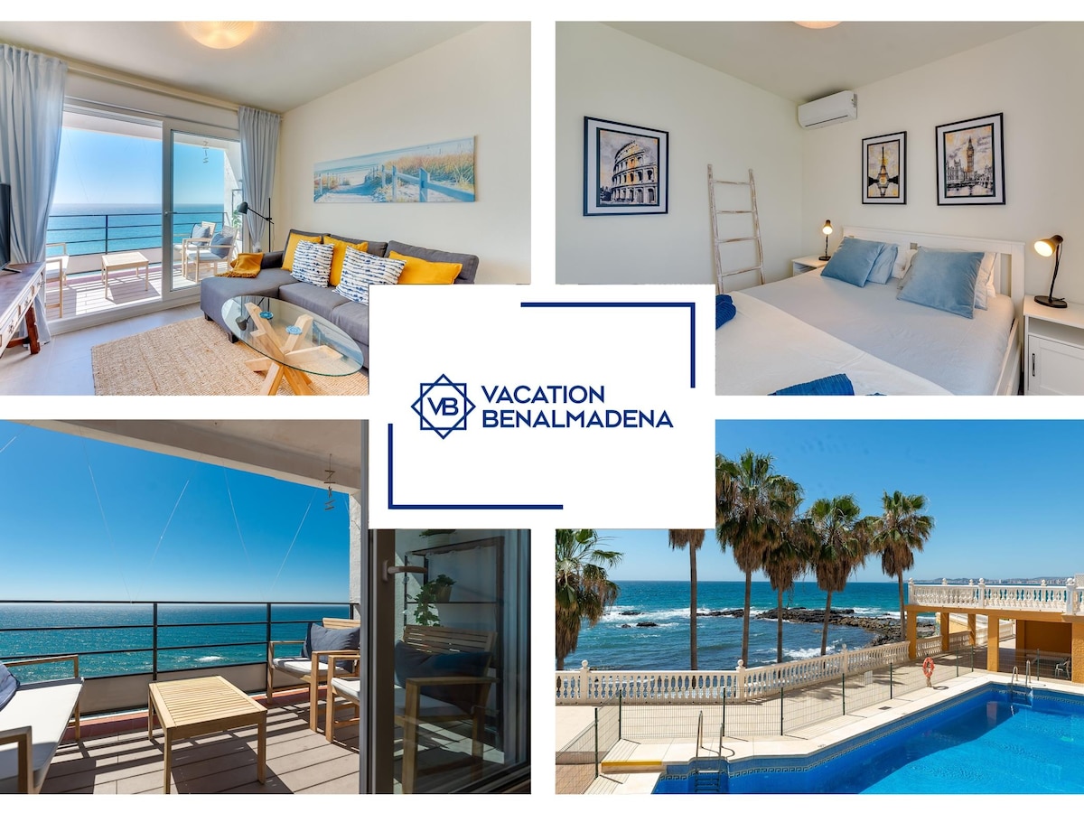 Beachfront apartment in Carvajal, between Benalmádena and Fuengirola. Enjoy spectacular sea views from the living room and the sunny terrace, perfect for breakfast or relaxing at sunset. Ideal for couples, it has 1 bedroom, equipped kitchen, full bathroom, air conditioning in living room and bedroom, fast Wi-Fi and free private parking. A few meters from the beach, train station and all the services for an unforgettable holiday on the Costa del Sol