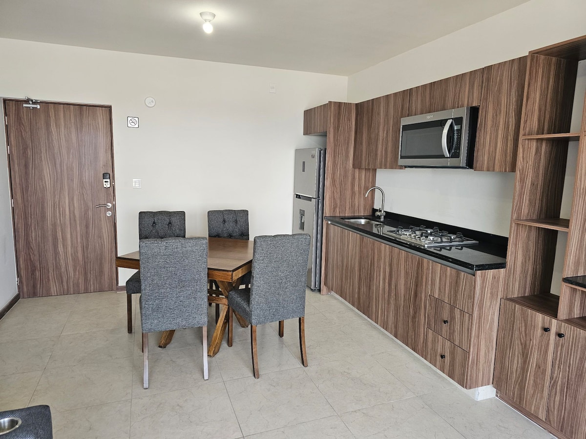 Very nice and super comfortable apartment with 1 bedroom separate from the living room, small dining room and kitchen; very central and close to IMSS clinic 16 and 71; One block from Avenida Juárez with businesses and restaurants within walking distance The apartment has Wi-Fi, pressurized water, and a smart TV so you can access your favorite streaming services with your account!