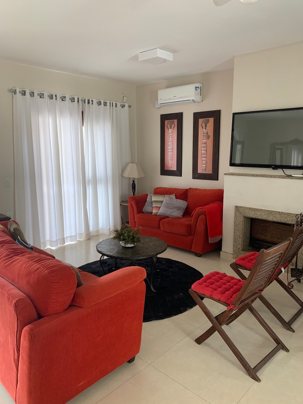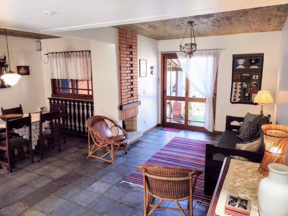 1 bedroom with air conditioning, large covered and closed garage, washing machine, barbecue, fireplace, wi-fi and workstation. Capacity for up to 4 people, located on Rua Araranguá, on the corner of Beira Mar, facing the beach, 450 meters from the Mampituba river that borders Torres. In the bedroom a double bed, in the living room an overhead bed and a sofa bed that can be transformed into two single beds or another double bed. We have trousseau for rent or you can bring your own.