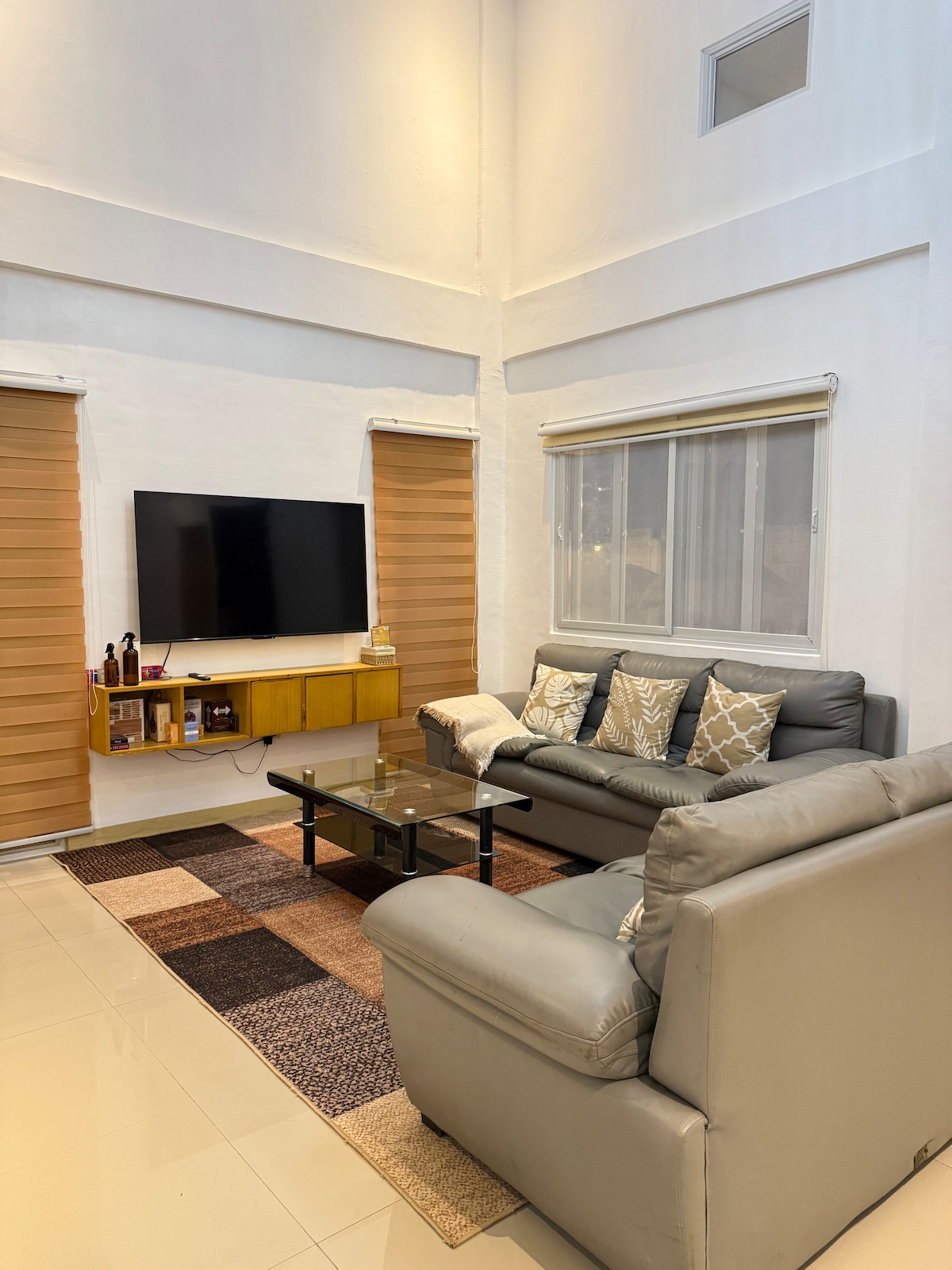 Highlights / Quick Glance • Loft-style duplex 1 queen sized bed and 1 double sized bed • Pet-friendly (₱500 fee; pets must wear diapers at all times) • Full kitchen: gas stove, microwave, oven toaster, fridge, utensils • TV with Netflix + Internet/Wi-Fi • Parking inside or outside the compound • Water: 1 free gallon included, additional ₱30 per gallon • Guests bring their own towels, toothbrush, toothpaste, shampoo & soap ⸻