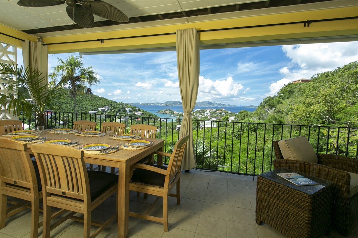 Sugarapple at Kapok Villas is a beautiful spot for your St. John, USVI getaway. This spacious unit is well lit w/ vaulted ceilings, 2 bedrooms with AC, 2 full bathrooms & a full service kitchen with breakfast bar that flows into the open dining and living room areas. The covered outdoor balcony has majestic views of the lush VI National Park & beautiful blue Caribbean Sea. There is an expansive pool deck area with a full size pool, tiki bar & entertainment area. 12 minute drive to the beach!