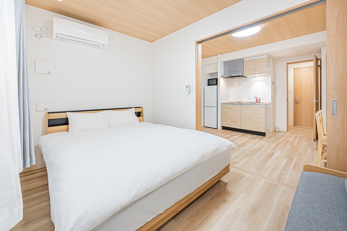 ⚑ Brand New! Cozy and modern 30㎡ room in a stylish building with an elevator, completed in October 2024. ⚑ Cozy room featuring one double bed (140x200cm) . ⚑ Convenient transportation: Just a 2-minute walk (130m) to Sugamo Station on the Yamanote Line. ⚑ Direct, non-stop access to Shinjuku, Ikebukuro, Harajuku, Shibuya, Ueno, Meguro, Ginza, Tokyo Tower, Tokyo station and more.