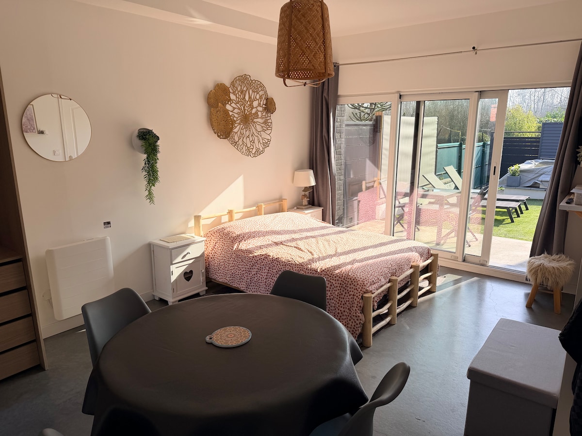 Welcome. Charming studio with private entrance nestled in a green setting. Recently redone. Guests can enjoy tea and coffee available for a relaxing break in the garden amidst birdsong or choose to go jogging, cycling or take a bucolic walk along the canal. The guinguette is a stone's throw away and access to major highways is very close. Lille and Tournai are 20 minutes away. Ideas for outings: La Piscine Museum, Villa Cavrois, La Condition Publique, etc.