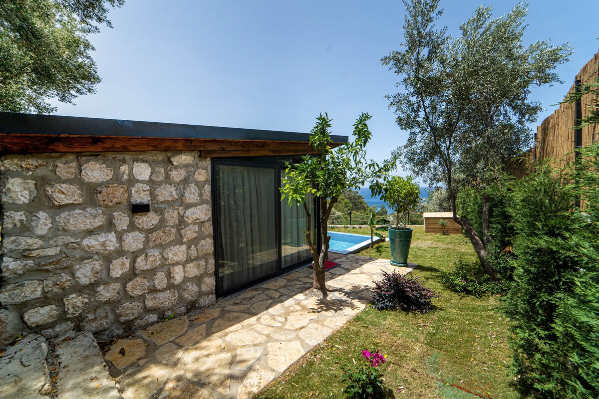 LEVİSSİ LODGE is a luxury villa located in Kayaköy, Fethiye, featuring custom-built stone and wood architecture. With a secluded private pool and carefully landscaped garden, it offers a refined accommodation experience. Ideal for two guests, it can host up to four with additional divans. The pool is available year-round, no pool heating system available.