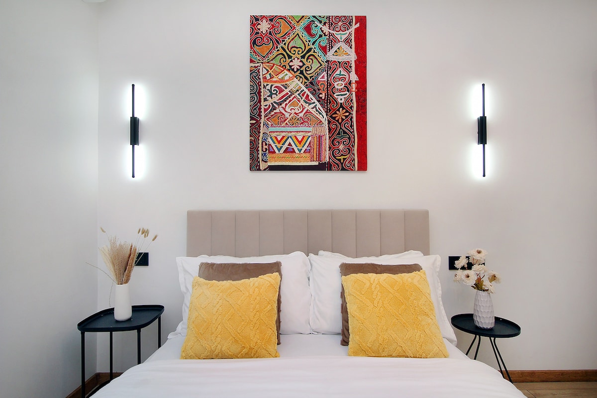 This top-floor pied-à-terre is located in the affluent Golden Quarter district, right in the heart of Almaty. Thoughtfully designed with meticulous attention to detail, it’s an ideal retreat for individuals or couples. Staying here places you in the perfect spot to explore downtown Almaty, with a wealth of cafes, boutiques, cultural attractions and public transport just steps away. The iconic Opera House is only a couple of minutes’ walk away. The building does not have a lift.