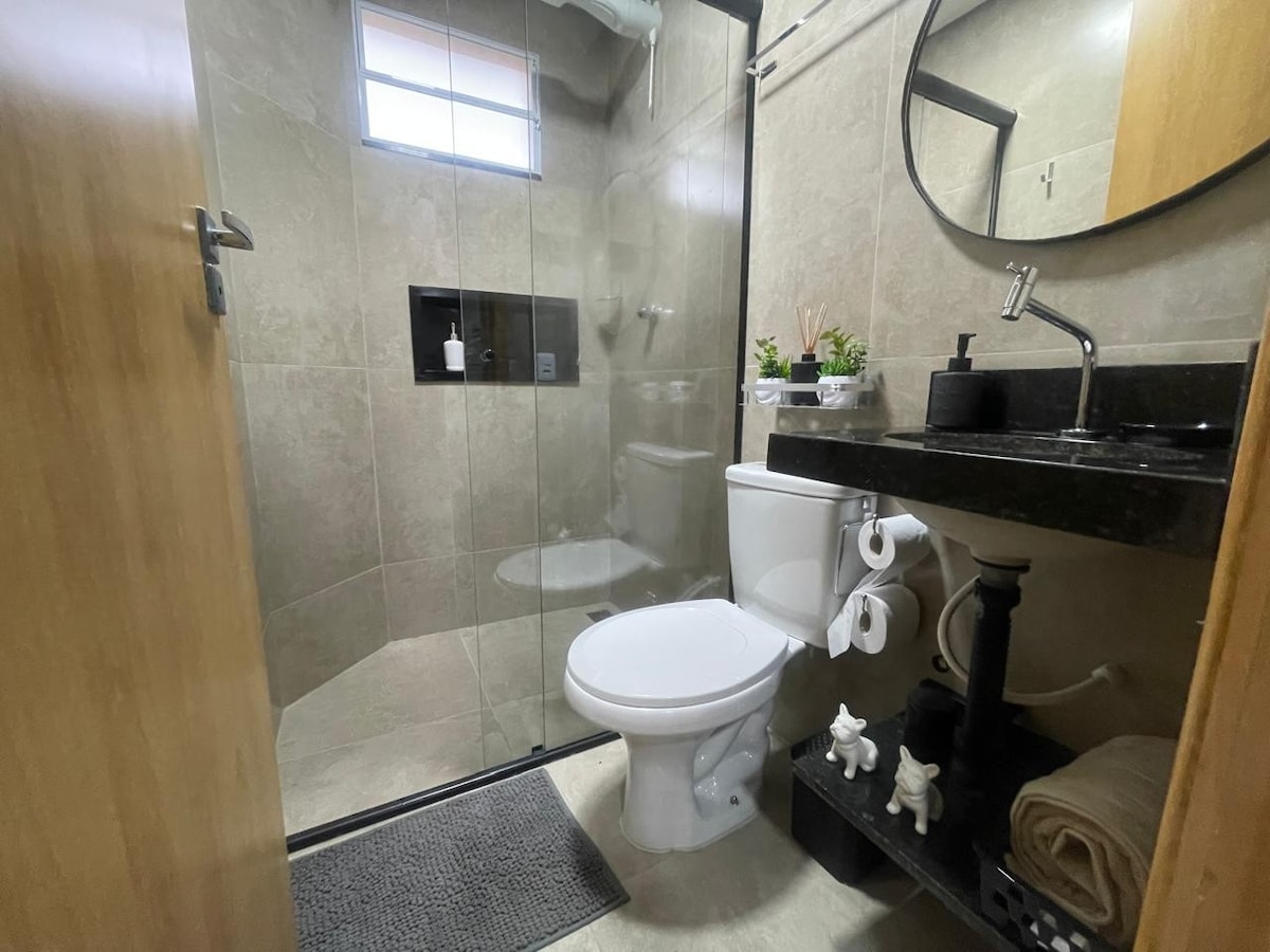 Ground floor apartment, comfortable and safe in a gated community. It has 1 double bed, 2 single beds and 2 extra beds, a living room with a Smart TV, a kitchen equipped with utensils and a laundry room with a washing machine. Parking space for sedan or medium truck. Quiet environment, ideal for families or groups, with easy access and no stairs. Perfect for those seeking practicality and comfort during their stay.