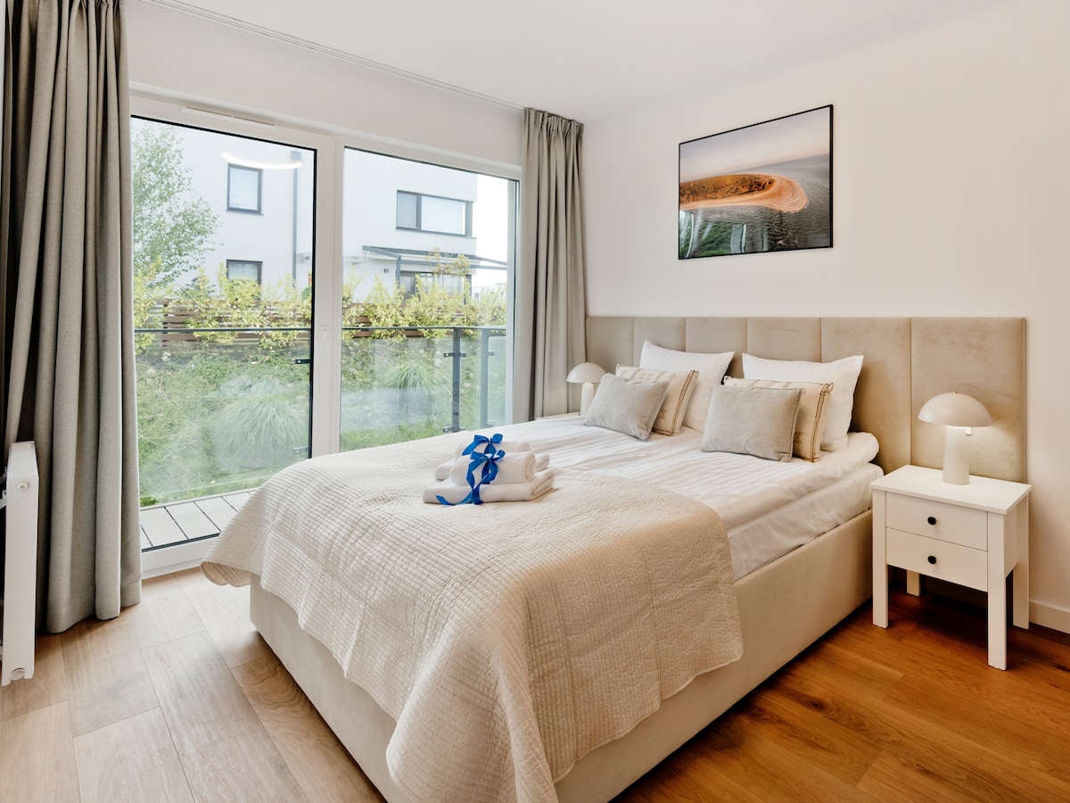 Luksusowy apartament zlokalizowany zaledwie kilka kroków od plaży nad Zatoką Pucką i molo w Mechelinkach. Jest to idealne miejsce dla osób szukających wytchnienia w otoczeniu pięknej przyrody i jednocześnie bliskości atrakcji, które oferuje Aglomeracja Trójmiejska. Mechelinki oferują jedne z najbardziej zjawiskowych krajobrazów na polskim wybrzeżu. W zasięgu chwili spaceru dotrzemy na nadmorskie klify dzielące je od Gdyni, do przystani rybackiej czy Rewy – mekki sportów wodnych.